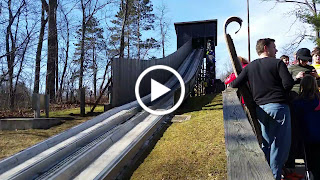 I can easy say we did not earn the polar bear patch, this weekend. Temps were in the 50s, so there was some concern of what to expect when we arrived at the Toboggan hill. Little to no concern for frostbite, just sun burn. We arrived about 20 min before they open and the parking lot was packed :(... We stood in line for the next 45 min waiting to rent a Toboggan and hoped it would be fun. As you can see from the photos in the Blog we had a great time. We were not cold and even had a good workout caring the heavy sleds back to the line to run again.. The tracks were running about 32-34mph.. So it was a great experiences for all.